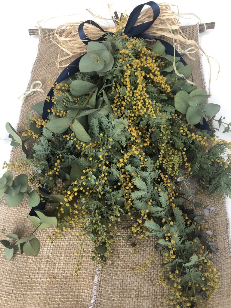 春を感じる可愛いミモザの生花でスワッグ(花束)を作成します。